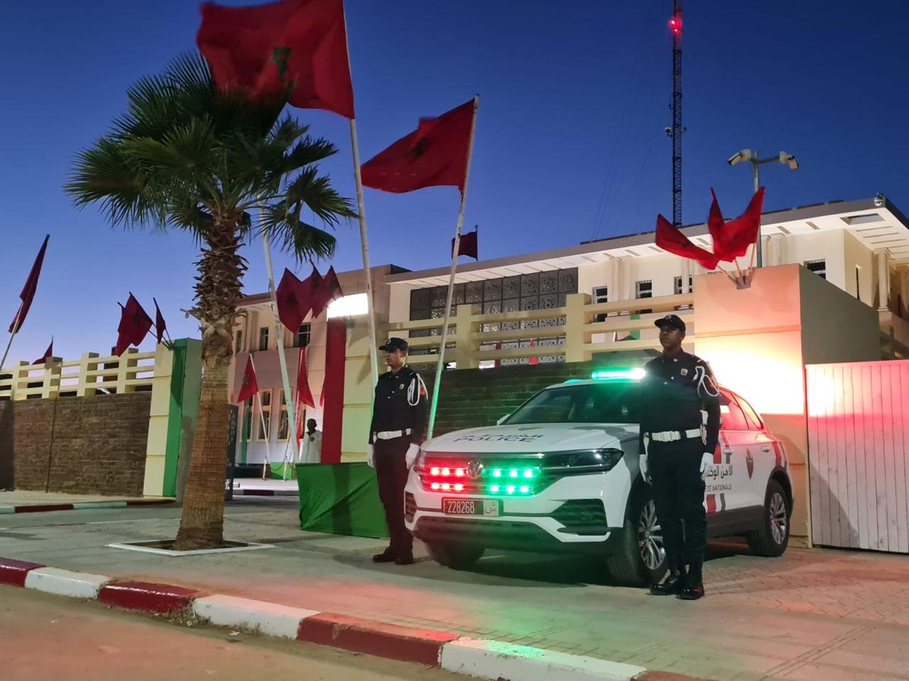 وجرى تدشين هذا المقر الجديد بحضور والي جهة العيون – الساقية الحمراء عامل إقليم العيون عبد السلام بكرات، وعامل إقليم السمارة حميد النعيمي، ووالي أمن العيون حسن أبو الذهب، بالإضافة إلى قناصلة معتمدين بالعيون وشخصيات مدنية وعسكرية.