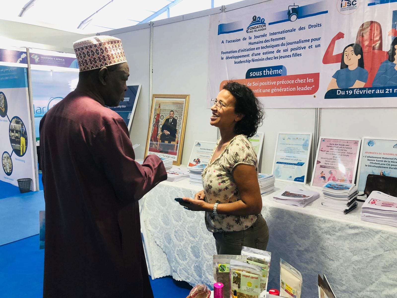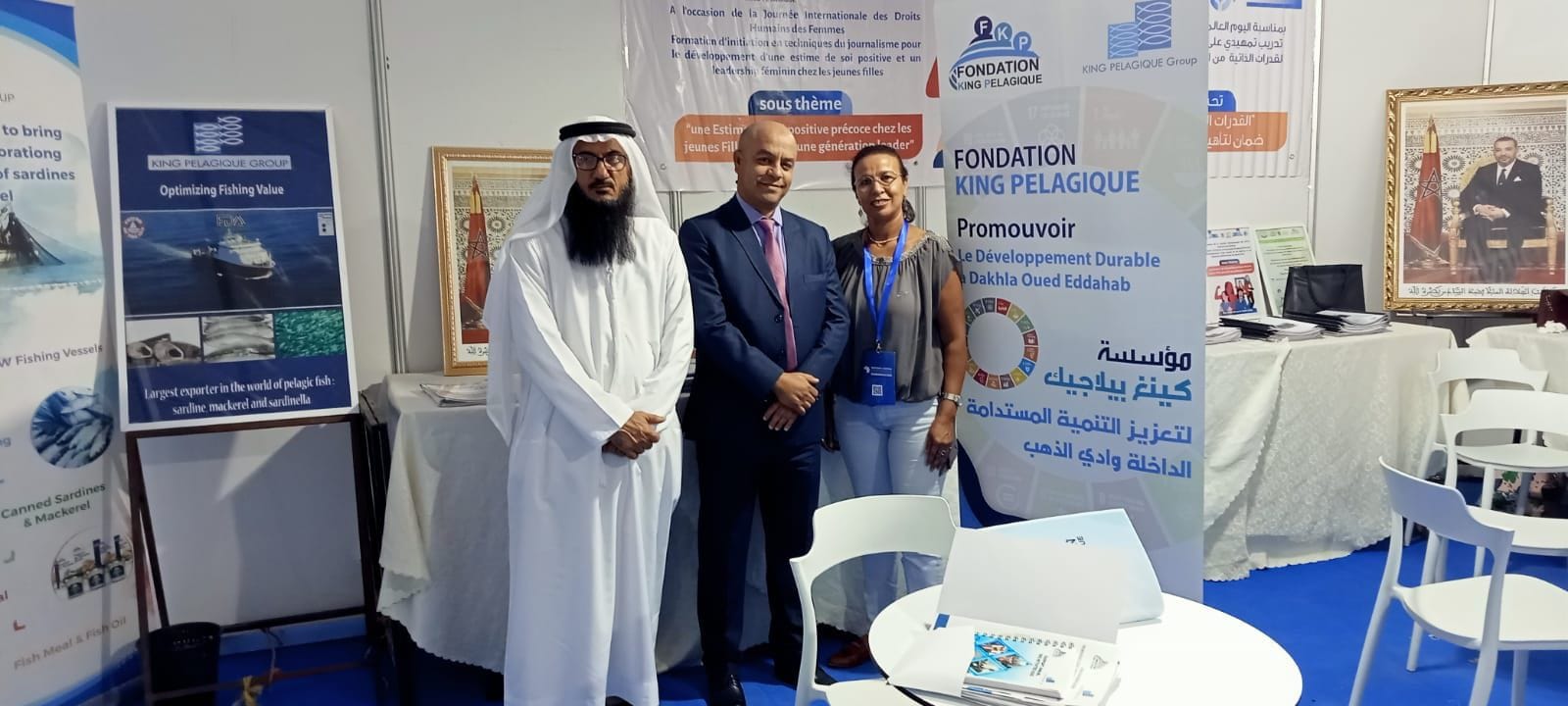 على هامش فعاليات منتدى Seafood 4 Africa لتثمين صناعة الصيد البحري وتربية الأحياء المائية التي تحترم منطق الاقتصاد الأزرق بالداخلة شاركت مجموعة king pelagique بعرضها للجانب الإجتماعي والمجتمعاتي ممثلة بمؤسسة king pelagique بفضائها ورواقها الخاص بها بالمعرض والذي امتد طيلة ثلاث أيام .