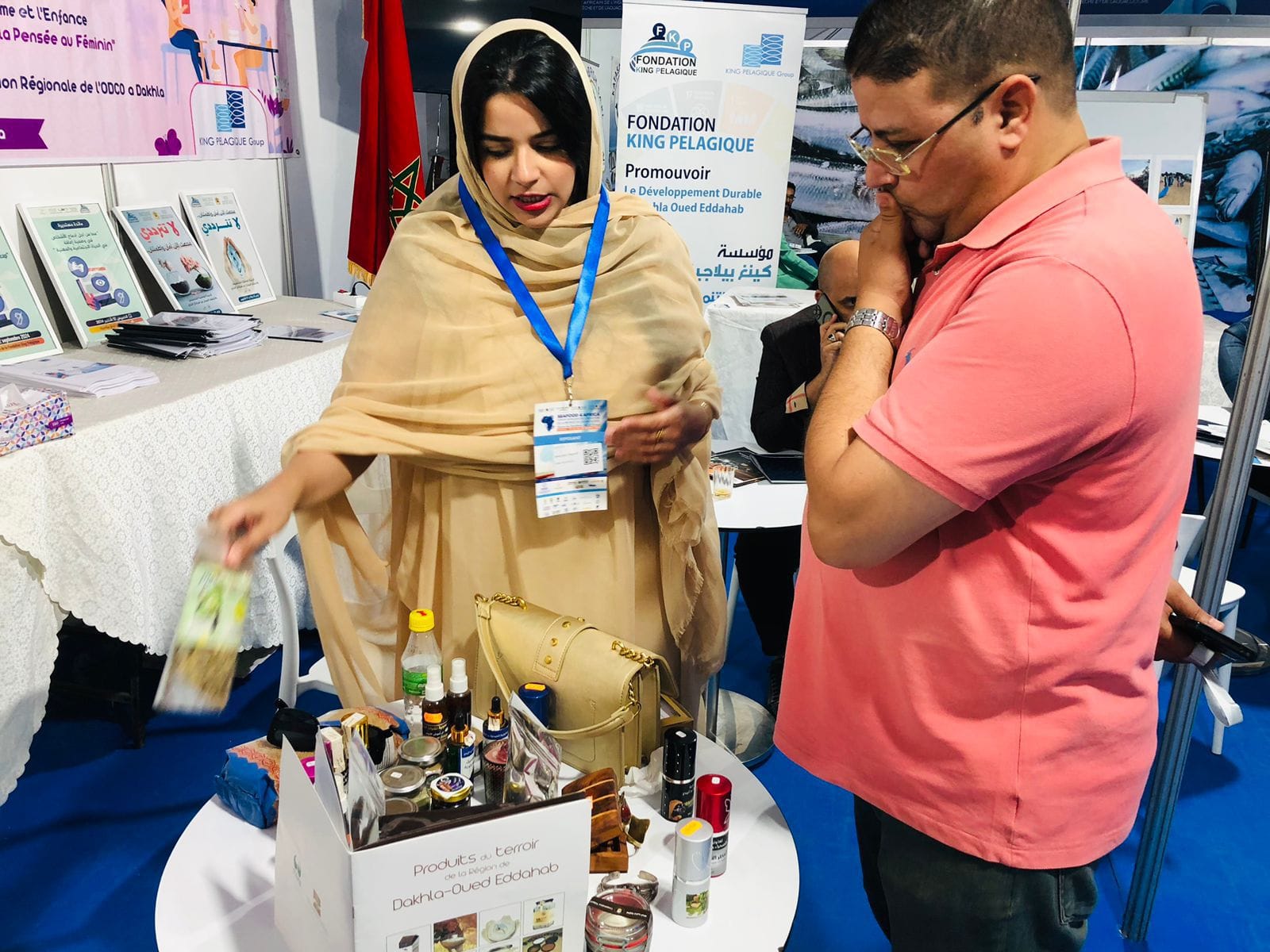 وقامت مؤسسة king pelagique بعرض منتوجاتها حيث عملت المؤسسة على استقطاب مجموعة من المستثمرين في القطاع إلى الرواق الخاص بها وتقديم مجموعة من الشروحات للوافدين ونبدة عن المؤسسة وأعمالها الإجتماعية وماتقدمه على صعيد الجهة بشريط موثق يضم أنشطة المؤسسة إلى جانب مطبوعات خاصة لأنشطتها المتنوعة حيث تم فتح مجموعة من النقاشات بين المؤسسة والفاعلين في القطاع البحري الإفريقي.