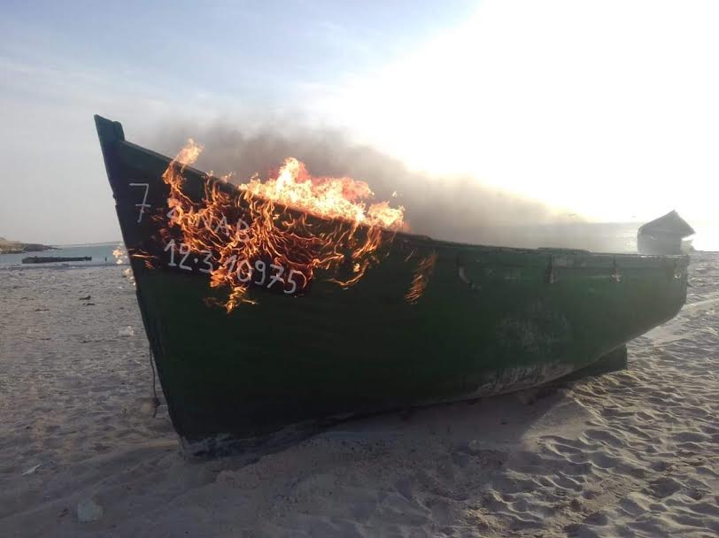 سلطات الداخلة تحرق قاربين محملين بأخطبوط مهرب