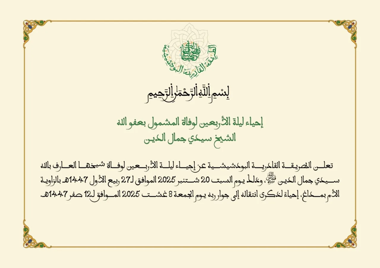 بلاغ الطريقة القادرية البودشيشية حول إحياء ليلة الأربعين لوفاة المشمول بعفو الله الشيخ سيدي جمال الدين